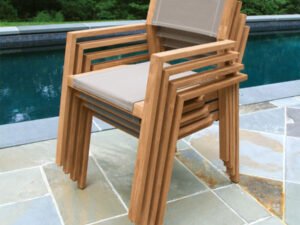 • Durable and space-saving teak stacking arm chair, handcrafted in Indonesia. Ideal for outdoor use in gardens, patios, cafes, and commercial spaces.